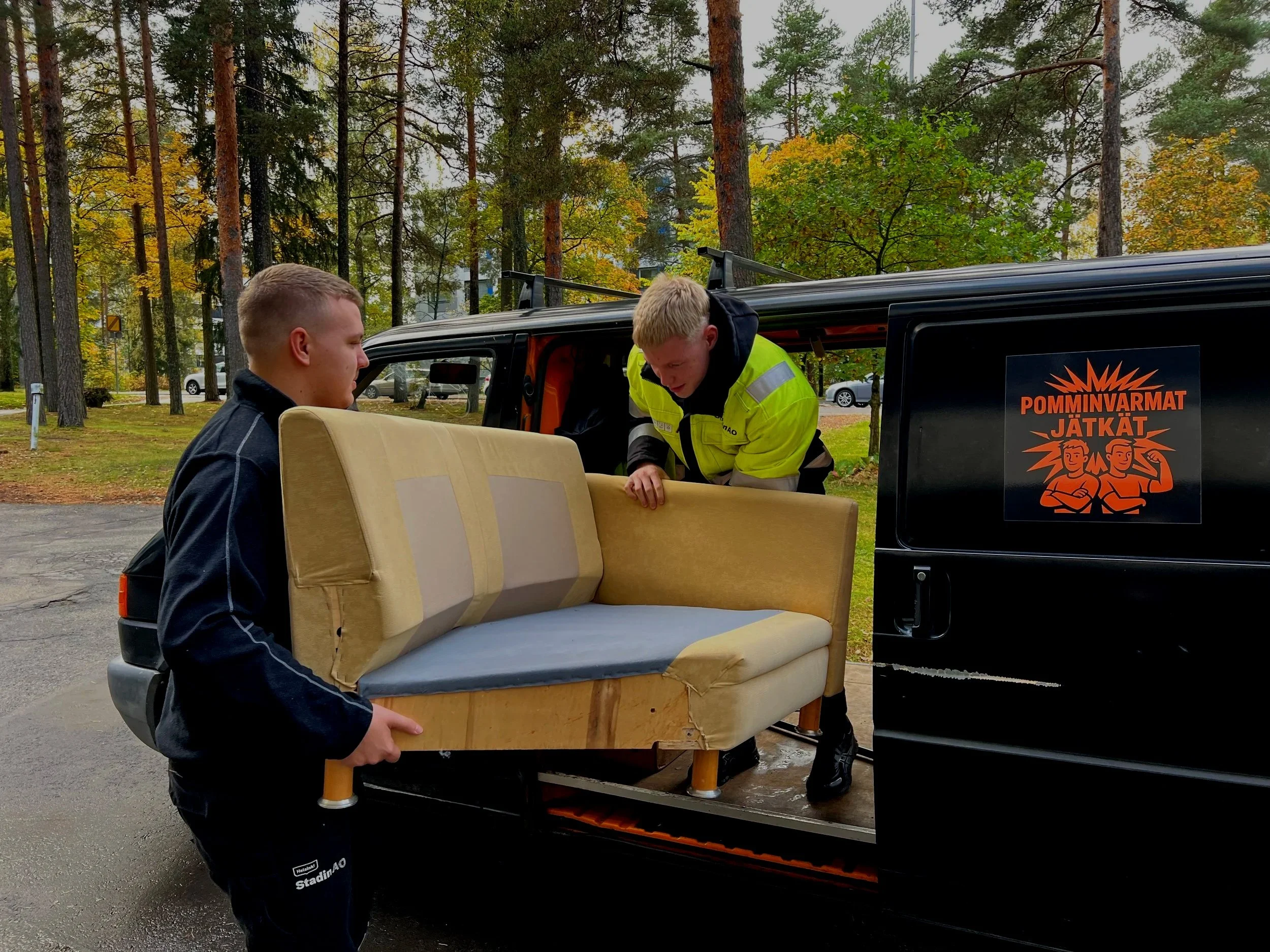 Jätkät jotka tulee pomminvarmasti paikalle, pakkaa kamat pomminvarmaan pakuun ja kuljettaa ne asianmukaiseen paikkaan pomminvarmasti - oli se sitten uusi koti, jäteasema tai varasto.