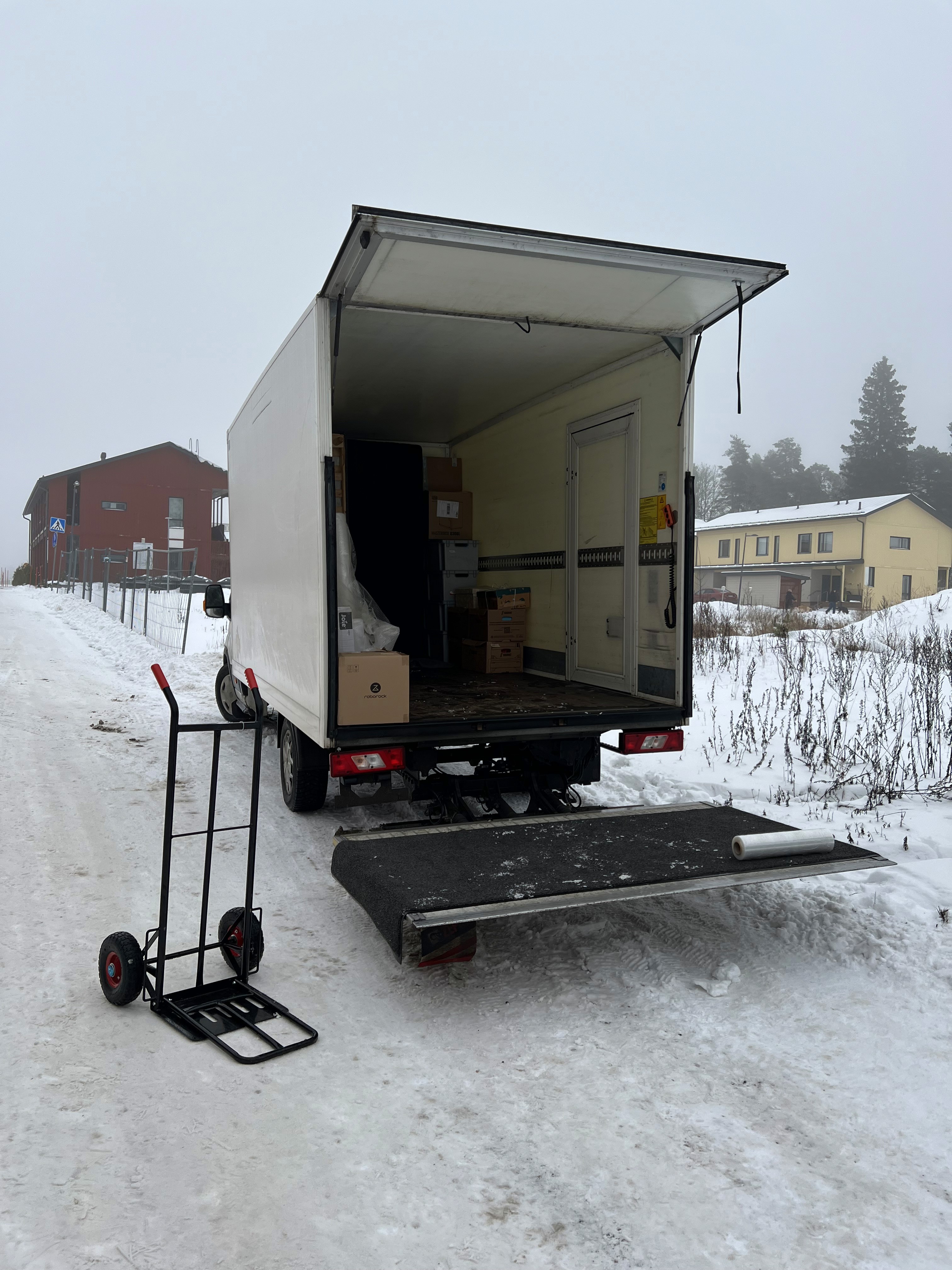 "Kolmion muutto Kirkkonummelta (katutaso) Keravalle 3-kerrokseen (hissi✅) Matka: 61km, Hinta 378€!"
