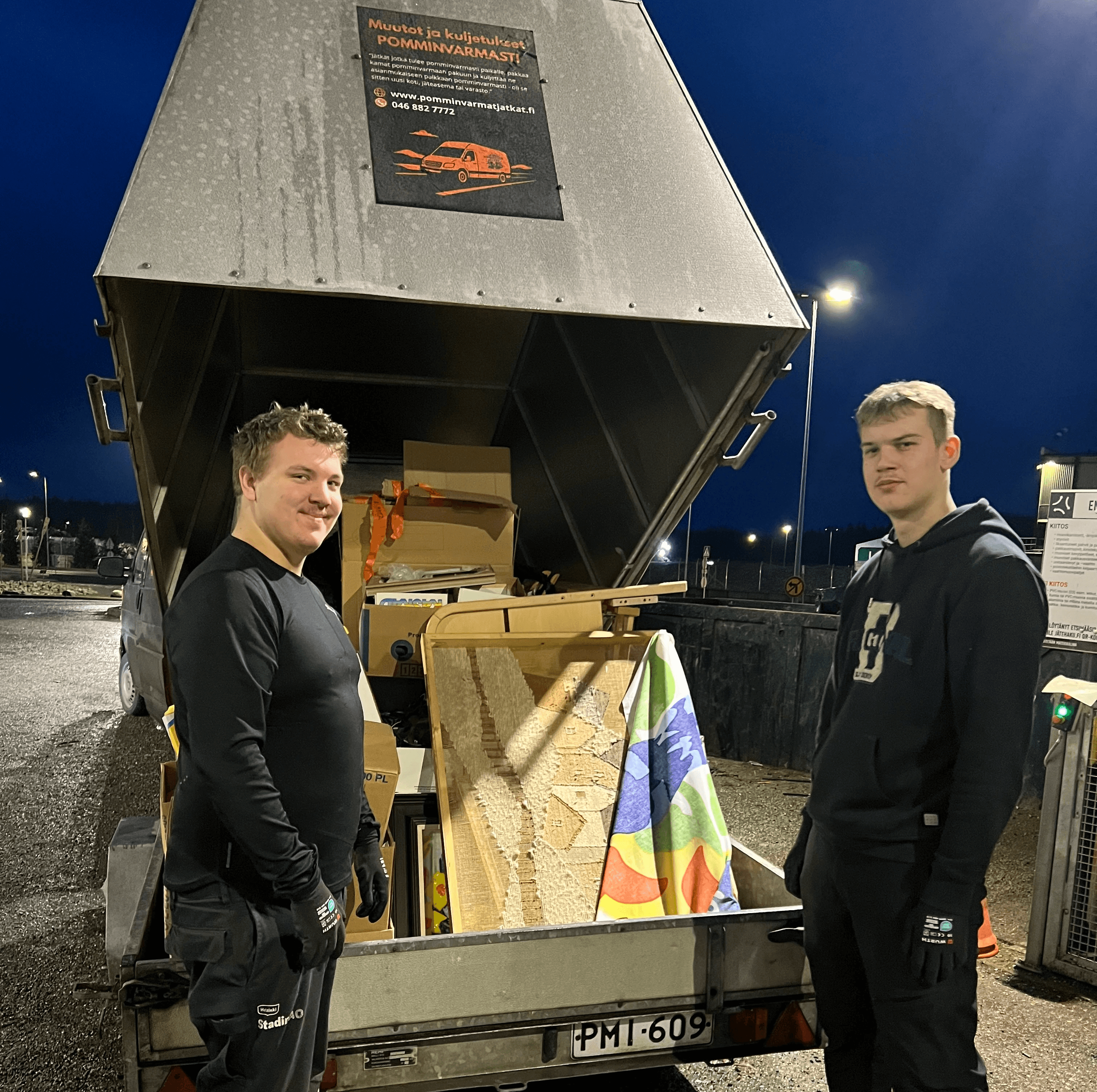 Pomminvarmat Jätkät pitävät huolen, että rojut päätyvät jäteasemalle.